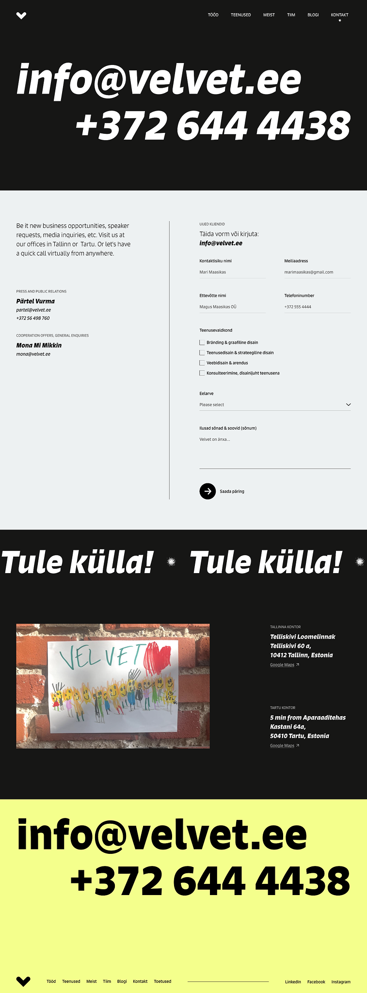During my internship at the Estonian’s leading design agency, I got to redesign their own website. The purpose of this wasn’t to rebrand the agency but to give it a fresh new look and feel. Since the agency has been around over 20 years, it has established its name and branding. Tuning their infamous yellow colour and introducing new textures, gave the website a new breathing.